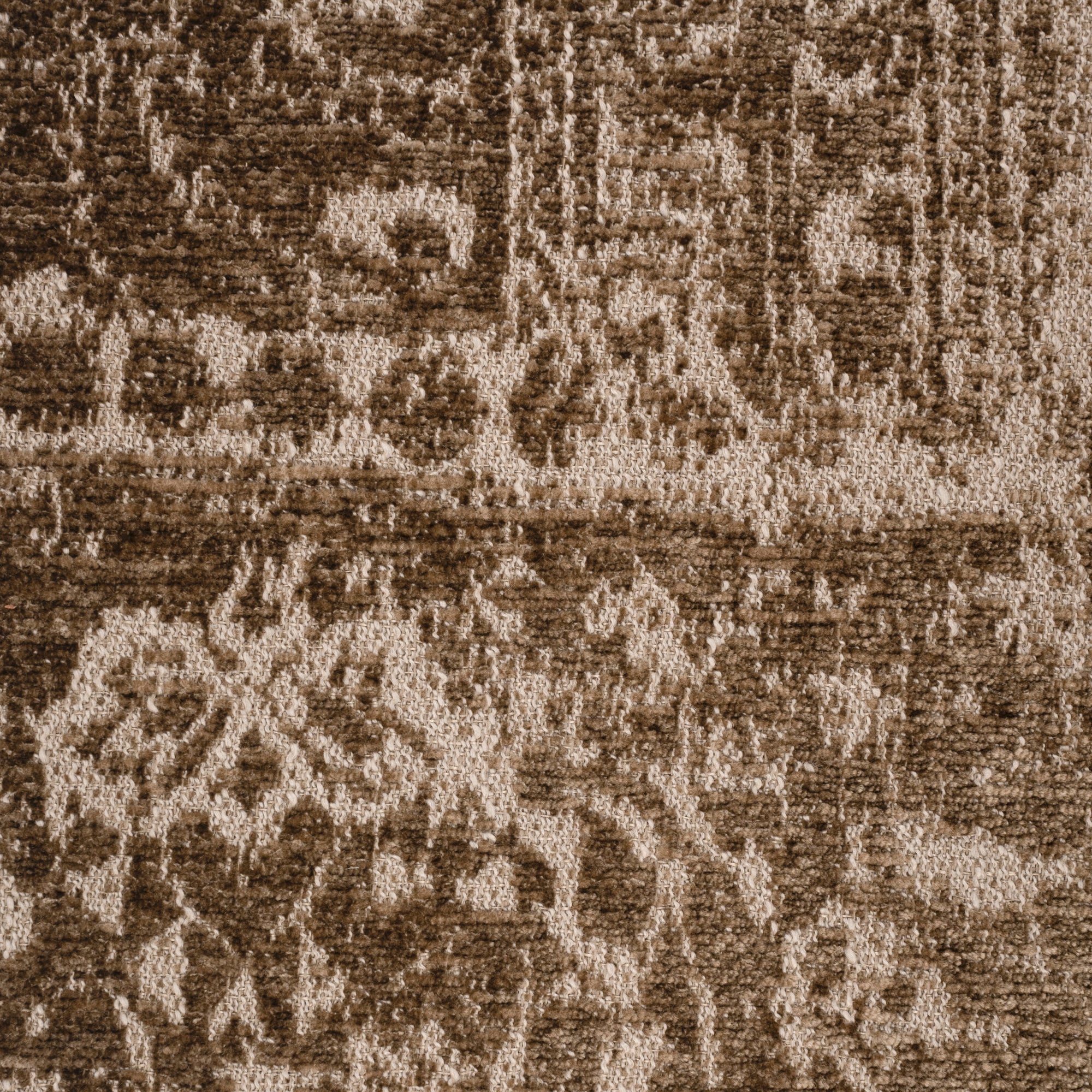 Mercado is a jacquard chenille design inspired by antique rug patterns. The novelty warp yarns provide a subtle texture against the dense chenille, giving this fabric a soft, vintage look.